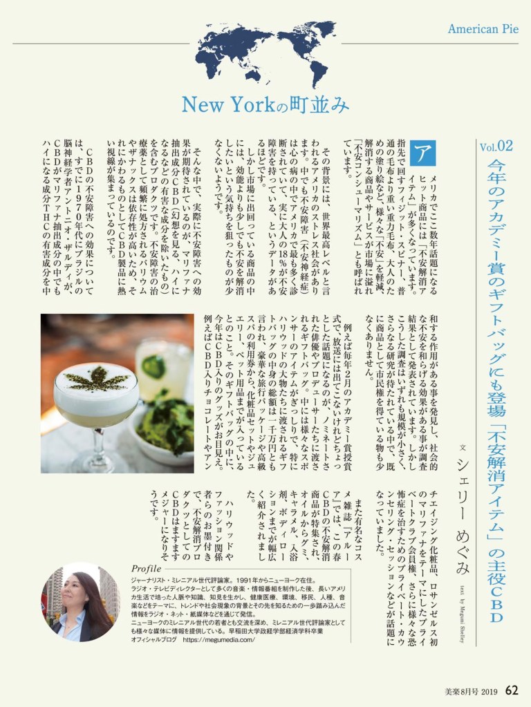 「月刊美楽」アメリカCBD最新事情 ビューティから医療まで今世界で話題のCBD(大麻由来のハイにならない成分)入りプロダクツの情報や、最新ニュースをレポートしています。 「月刊美楽」日本の未来を考える提案集 Share this: Click to share on X (Opens in new window) X Click to share on Facebook (Opens in new window) Facebook Like Loading...
