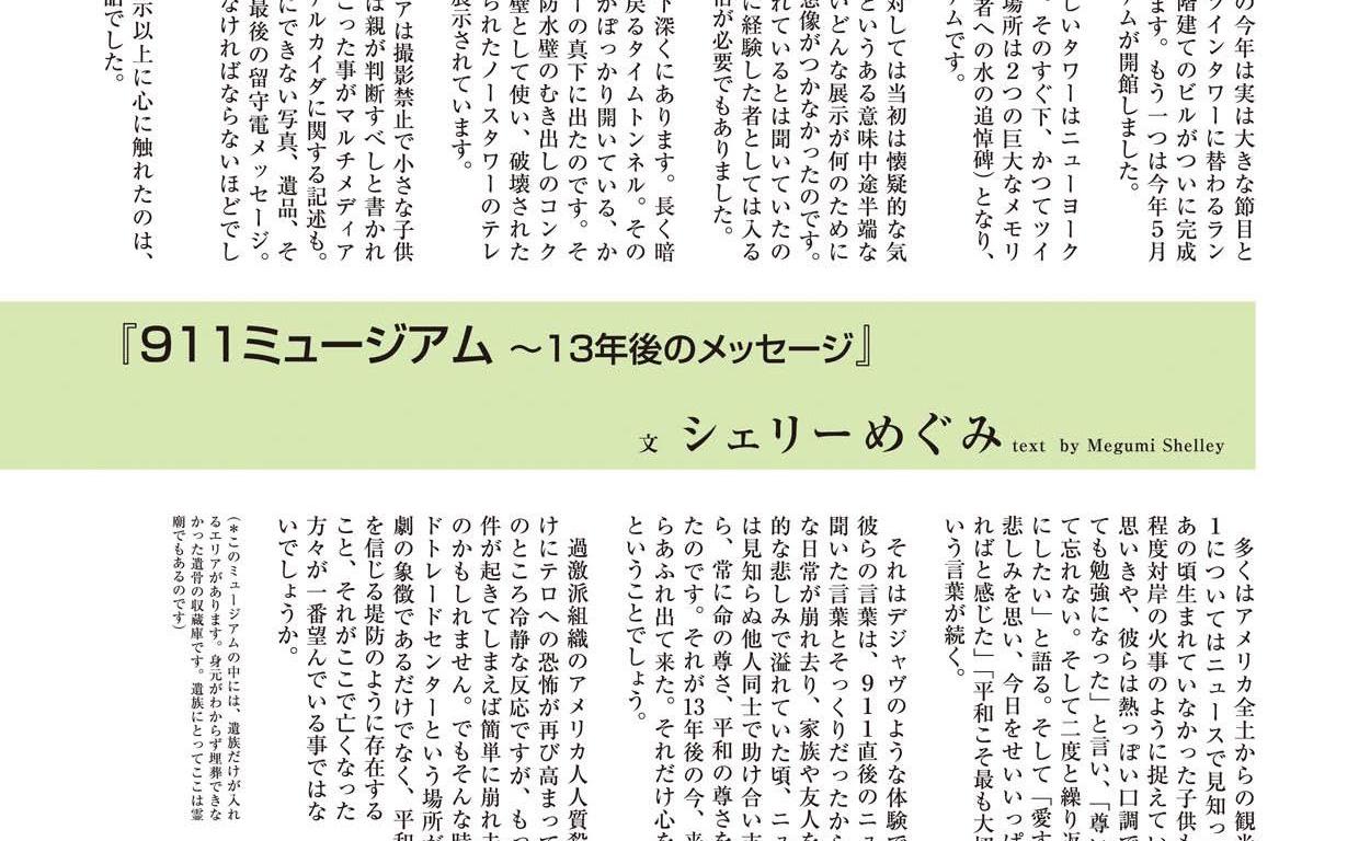 「平和で当たり前」なのではなく、実は平和は長い歴史の中で「築かれたもの」だということを次の世代に知らせるべきで、911ミュージアムを13年もかけて作ったのもそのため。