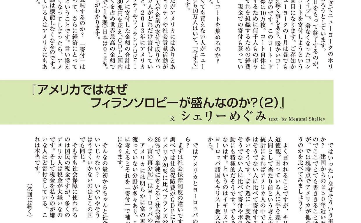 「月刊美楽2月号」アメリカではなぜフィランソロピーが盛んなのか(2)