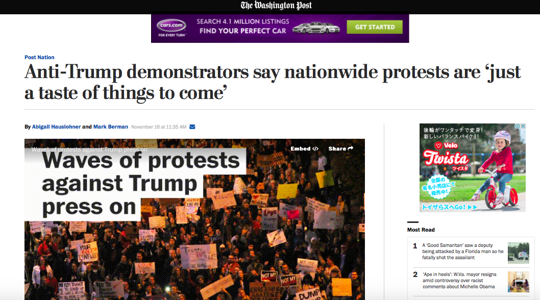 衝撃の大統領選から1週間、ニューヨークではトランプショックは未だ続いています。