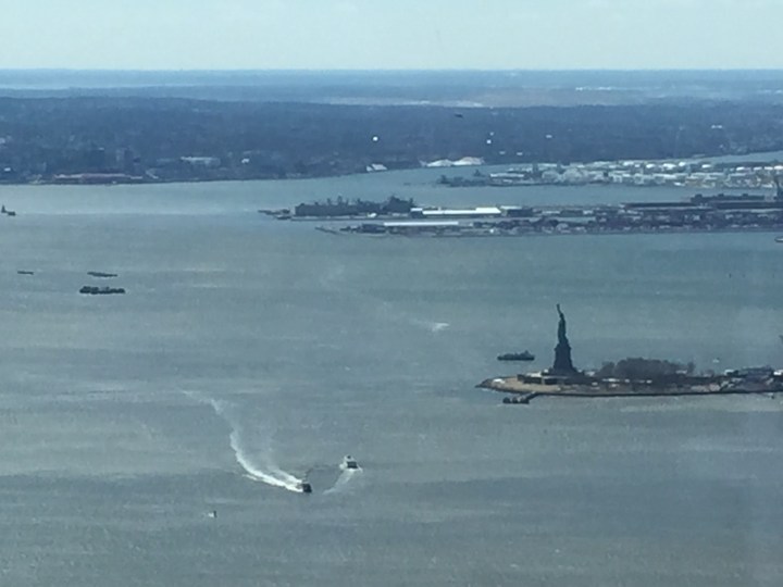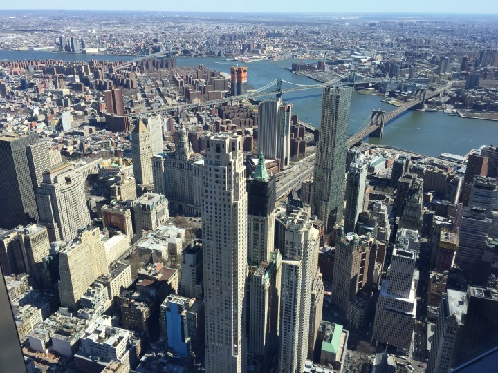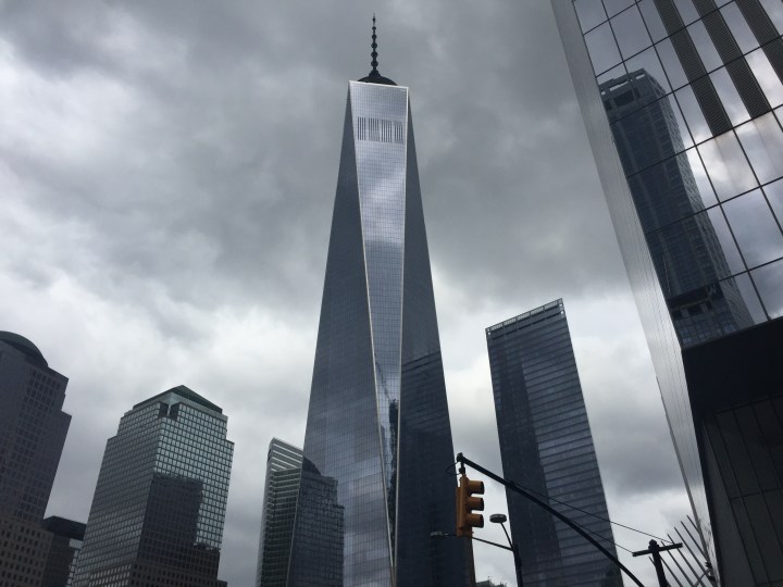 その前にそそり立つ巨大なビルが、911から15年後の2年前にオープンしたランドマークOne World Trade Center。問題はここの102階の展望台です。