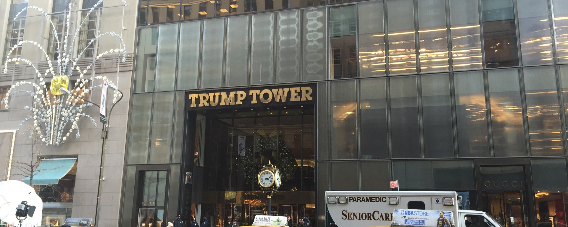まずご存知トランプ自宅58階建ての「トランプタワー」は、ティファニーやブルガリなどの有名店がずらりと並ぶニューヨーク5番街のど真ん中。しかもティファニーのお隣。