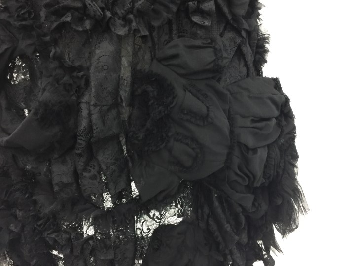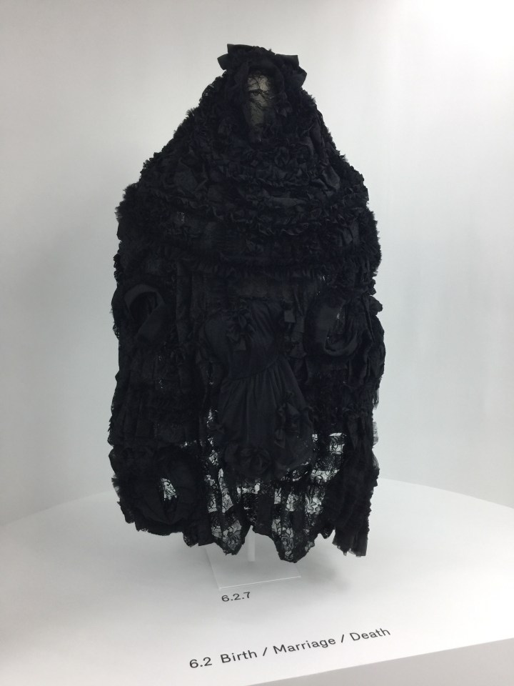 中でも私が一番衝撃を受けたのは、「誕生・結婚・死」というテーマの中にあった「別れの儀式」という作品。真っ黒いレースが何重にも重なって膨らんだ、床まで届くどっしりと重そうなドレス、
