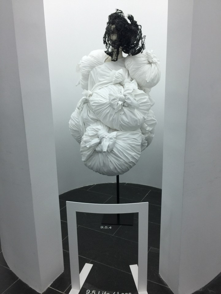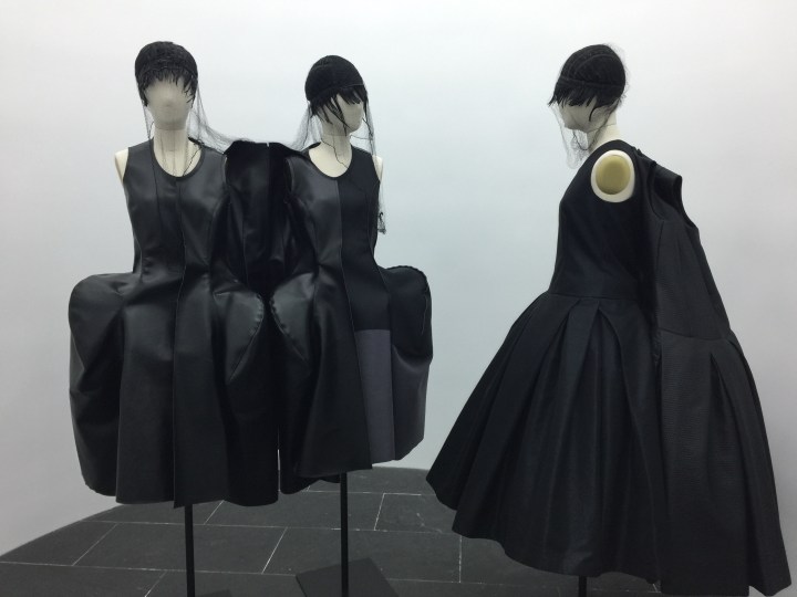 作品はいくつかのテーマに分かれていて、ファッションとアンチファッション、戦争と平和、生と死、という相反する2つを並べたタイトル。相反する2つの中間にあって二つを媒介するのが川久保さんの服という意味なんでしょうか?