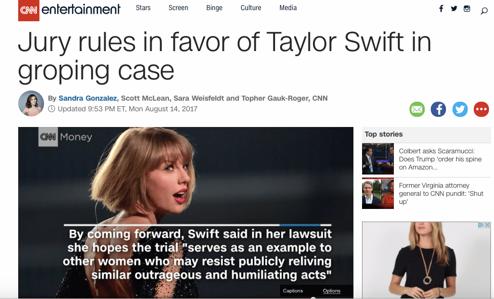 2年間にもわたりセクハラ裁判で戦っていたテイラー・スイフトがついに勝訴しました。