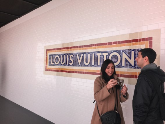 入り口は割とシンプル、ところがロビーに入ると、いきなりプロジェクション・マッピングの地下鉄が走ってくる。ニューヨーク、ルイ・ヴィトン駅になっているんです。