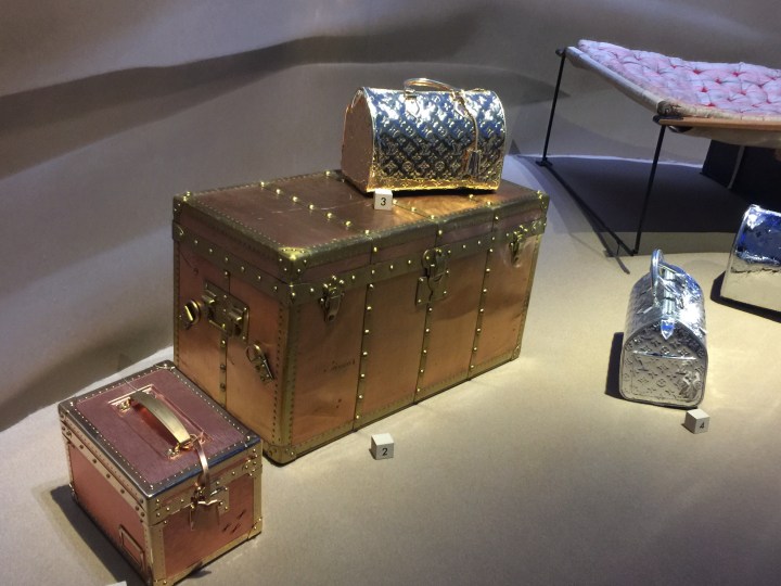 ルイ・ヴィトンと言えば、巨大なトランク。ドレスを吊るしたまま入れられて、引き出しがたくさん付いているあれ。タイタニックの映画で大富豪が持って乗り込むのが印象的でした。