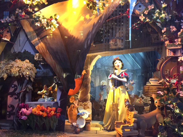 例えばロックフェラーツリーの向かいにある高級デパートSaks Fifth Avenueでは、今年はディズニーの白雪姫の80周年を祝って白雪姫のストーリー。