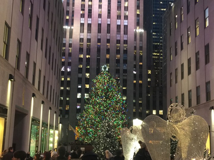 まずロックフェラーセンターの巨大クリスマスツリーが5番街から見える。