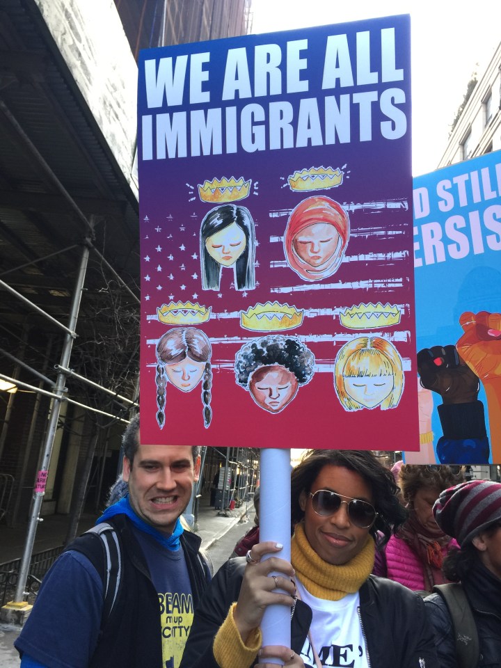 というのは去年トランプ大統領の誕生は、アンチトランプ派(ほとんどのニューヨーカー)にとっては大ショックで皆落ち込んでいたから、このマーチでこれほどの人が同じ気持ちでいるというのを確認できて大きな希望になった。