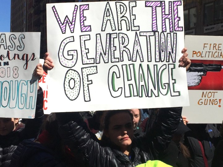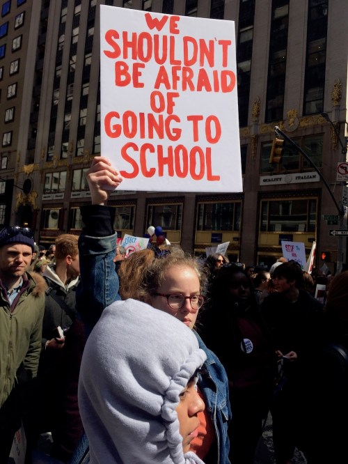 まずこのデモ、元々2月14日に起こり17人の犠牲者を出したフロリダの高校の生徒たちの呼びかけで始まったこと。先日行われた全米の高校生による授業ボイコットと同じ流れです。