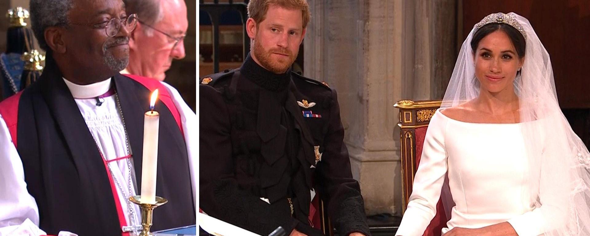 その彼が聖書ではなくi-padを見ながら、 身振り手振りで笑顔の説教を始めると、それが面白いんです。ロイヤルカップルや列席者からは時折大きな笑顔がこぼれたり、一方ではどう反応していいかわからず下を向く人も。