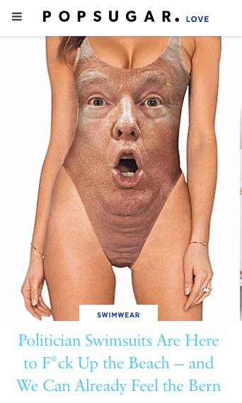 このメーカーBeloved Shirtでは、政治家の顔をプリントした水着を色々出していて、他にもプーチン大統領、ヒラリー・クリントン、バーニー・サンダース、そしてキム・ジョンウンまで! 値段はおよそ60ドル。