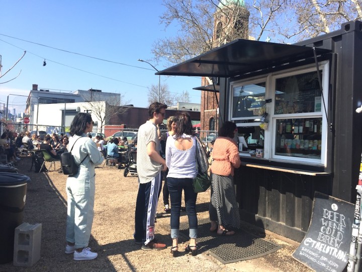 一体どうやって経営しているのかというと、コンテナの右半分を占める小さなキオスクで売るコーヒーとクラフトビール、ワイン、スイーツなどの売り上げで賄ってる。