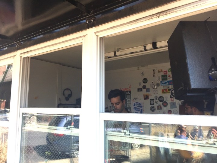 見ると中ではDJがレコードを回していて、スピーカーから音楽が流れている。実はここインターネットラジオステーションだったんです。