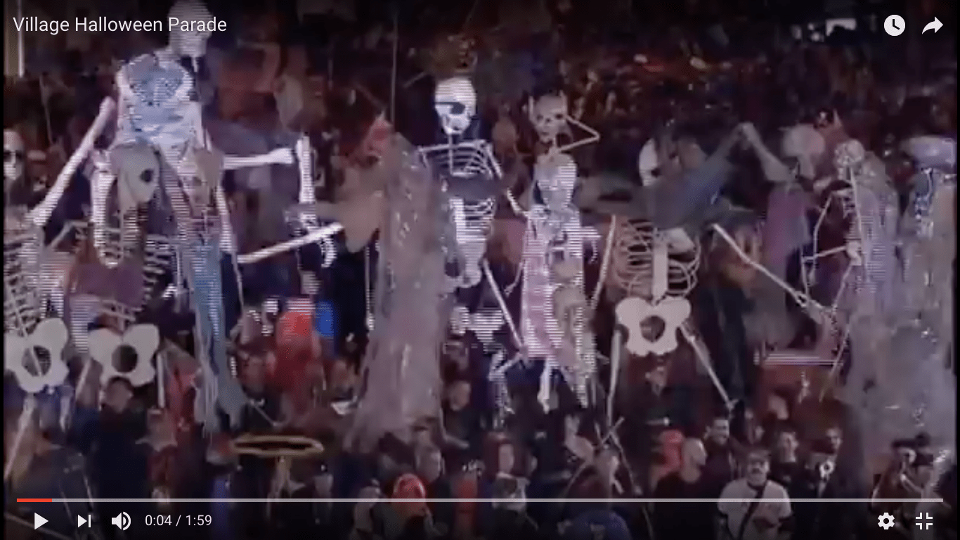 今年で45回目になるこのパレードは、夜行われるからニューヨークのカーニバルとも呼ばれていて、仮装すれば誰でも参加でき今年も5万人がパレード、200万人が見物する見込み。音楽あり、巨大なガイコツのパペットあり、何より参加する人のコスチュームのクリエイティビティがすごすぎて、地元テレビで生中継されるほど。もちろん魔女やスーパーヒーロー、ジェイソン、マイケルなど定番やセレブの仮装など、いわゆる映画やテレビなどの影響でポップカルチャー系はやはり強い。・