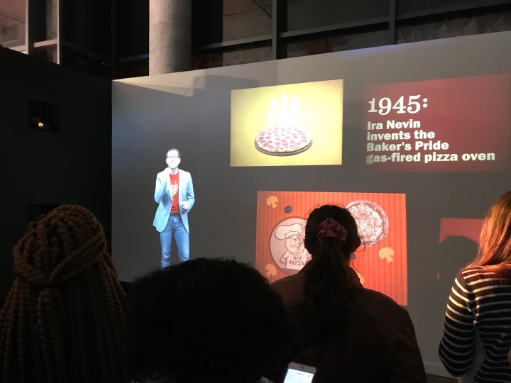 そして入り口を入ると、マルチスクリーンでピザ・エキスパートがピザの歴史を説明。ハイテク感を醸し出すが、館内音楽が大きすぎて内容がよく聞こえない。