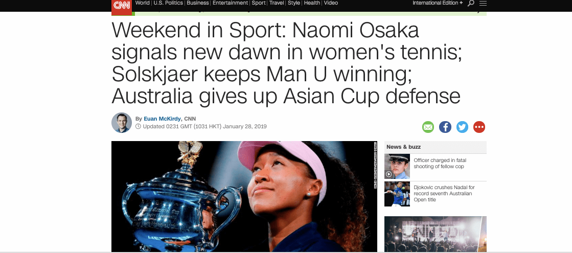 まずCNNの記事タイトルは「Naomiは世界の女子テニス界の新たな夜明け」