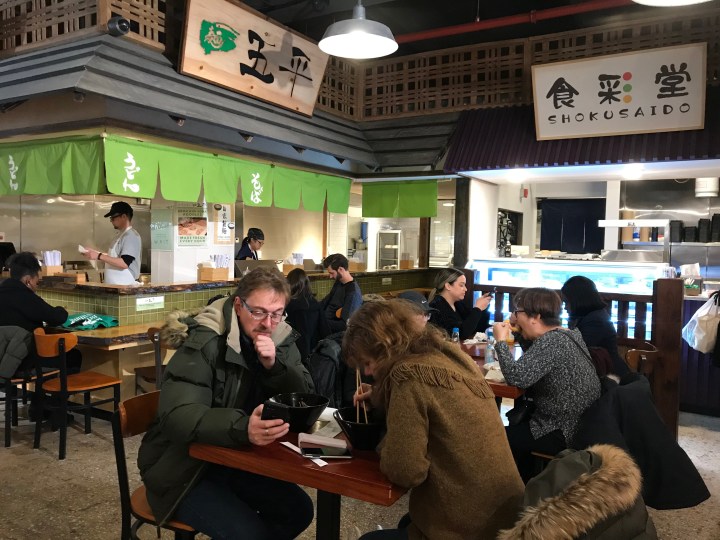 2000平方メートルの広いスペースは、まさに日本のフード・パーク。ラーメンやソバが食べられるフードホールと、日本の食材が揃うスーパーが合体。日本では珍しくないかもしれないが、まさに日本のモールに来たみたい。このスタイルのお店はニューヨークでは初めて。