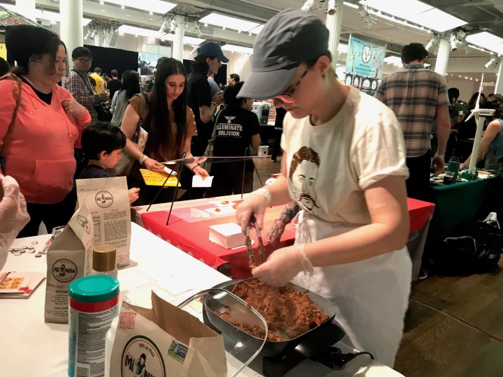 会場は大混雑、そんなに世の中ヴィーガンが増えたのか?と来場者に聞いてみると、100%ヴィーガンという人は4人のうち1人という感じ。