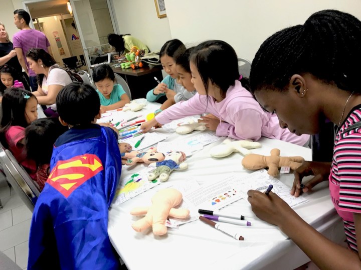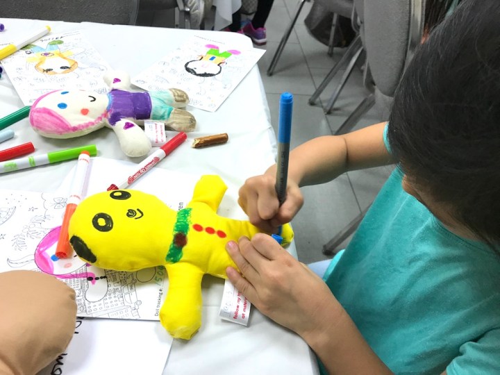 こちらのノンプロフィットMSTERIOは、ミステリオ・ドールという人形を子供達に作ってもらい、それをその子の分身として、世界の様々な開発国の子供達に贈ろうという、人形アンバサダー・プロジェクト。今回は60人の日系人、ハイチ人などの子供達とお母さんが集まり人形制作。できた人形は、Serve Haitiの栄養不良の治療を受けている子供達に贈られます。(栄養不良といっても瀕死の状態でやってくる子供が少なくない)