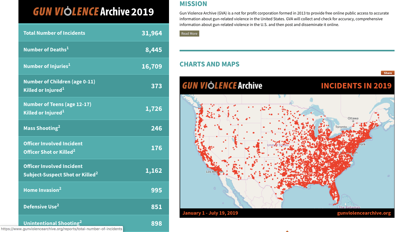 公共の場所で多くの犠牲者が出る銃撃がこう呼ばれていますが、ABCテレビでは2019年に入ってから、246回目のMass Shootingだったと報道。つまりアメリカのどこかで1日1回以上起こっている事に。