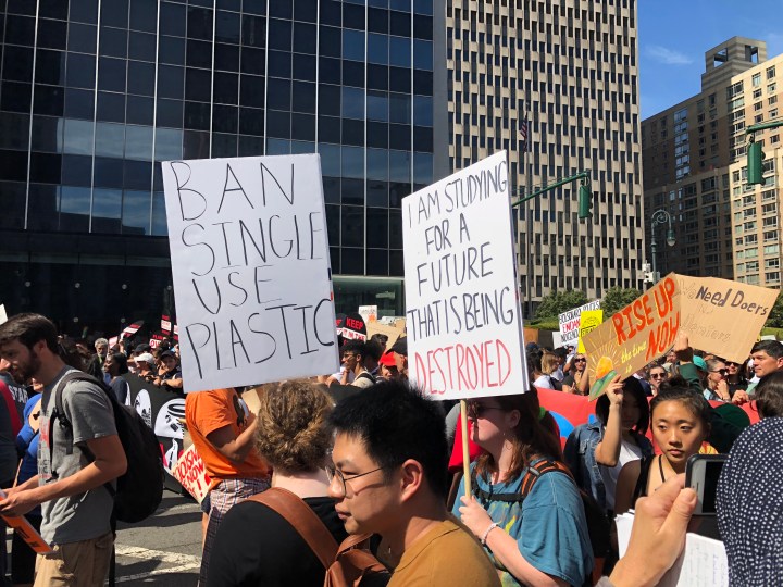 「使い捨てプラスチックを禁止せよ」「自分たちは破壊された未来のために勉強しているのか?」