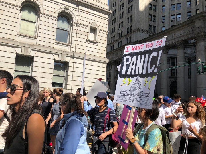だからプラカードにも「共和党よ私たちの星を助けてくれ」「議会はパニックせよ」というような、トランプ大統領はじめ環境対策に消極的な政治家たちに対する憤りや怒りをぶつけたプラカードも少なくありませんでした。
