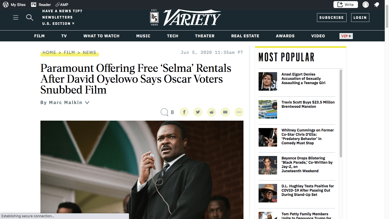 1960年代の公民権運動を指導したキング牧師が主役の映画、エヴァ・デュバーネイ監督の「セルマ(日本題はグローリー・明日への行進)はアメリカではItunesやアマゾンプライムで無料で見られる。
