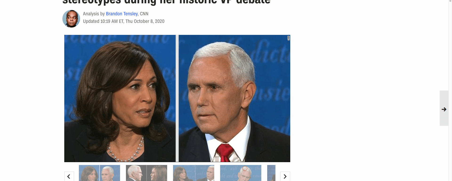 カマラが「ペンスさん私はまだ喋っています」と切り返す場面も。史上初の女性黒人副大統領候補としては、堂々として非常に冷静で品格さえ感じさせる態度だった。逆にペンス氏は終始守りに入っている印象を受けた。