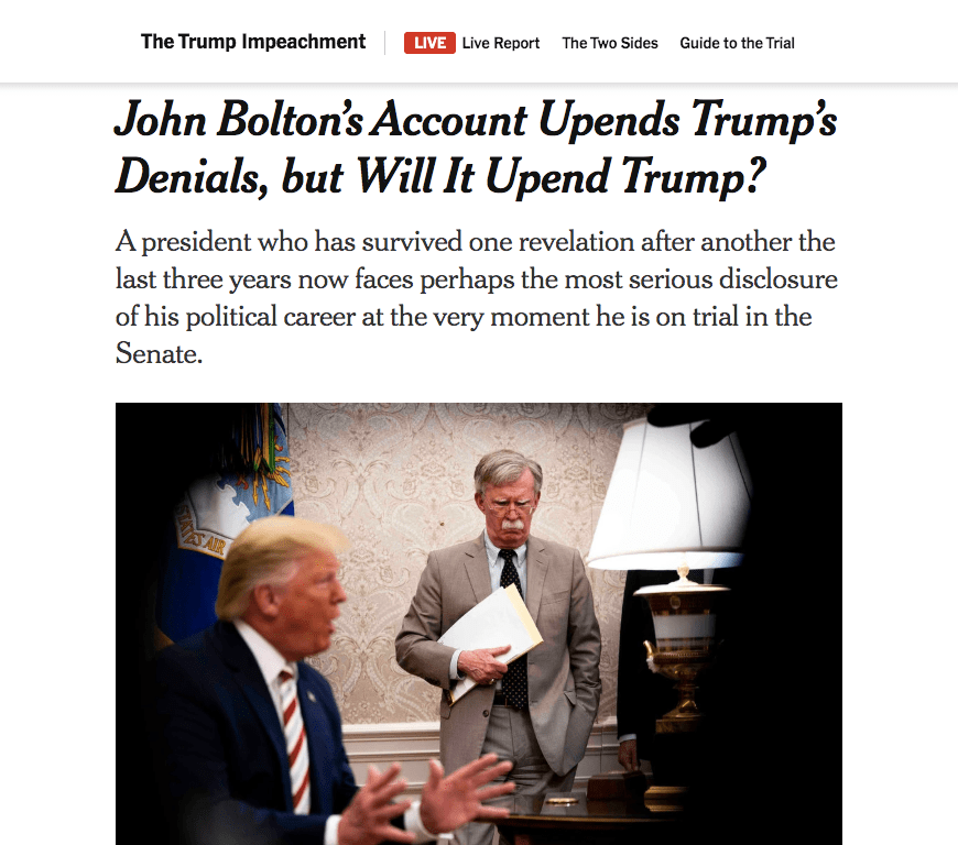 ボルトン元安全保障補佐官が新著の中で、トランプ氏の主張を真っ向から否定する著述、さてこれが弾劾裁判にどう影響? Continue reading トランプ弾劾裁判劇 ボルトン元補佐官の爆弾発言で流れは変わるか?Will John Bolton’s Bombshell Account Change the Course of Impeachment?
