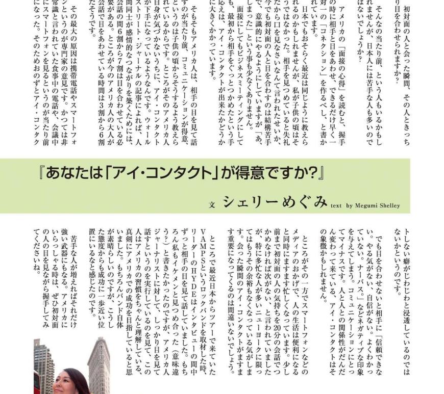 よく日本人は目を見て話さない、と言われますが、アメリカ人もアイコンタクトが下手になってきているようです。 Continue reading 「月刊美楽2014年1月号」あなたはアイコンタクトが得意ですか?