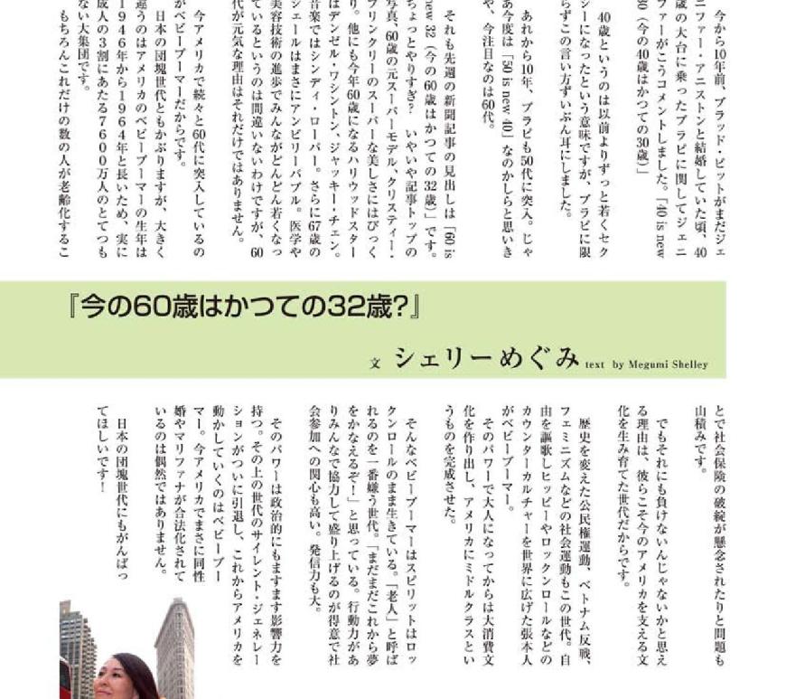 アメリカ人はとにかく年をとりたくない民族、アメリカ人特にベビーブーマーは「今の60歳はかつての32歳」と言い切る。 Continue reading 「月刊美楽2014年 5月号」今の60歳はかつての32歳