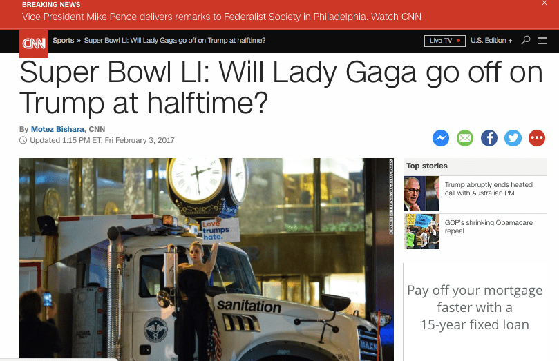 明日5日(日)のスーパーボウルはNFLフットボールのチャンピオンを決める国民的ゲーム。就任式から2週間、ついに政治から逃れて思い切り楽しめる? いやそうもいかないかもしれません。We may end up talking about plitics throughout the game this year. Continue reading [Trump Era]トランプ劇場番外編:国民的スポーツの祭典「スーパーボウル」も政治劇場と化すのか? How Much Super Bowl Will Be Political?