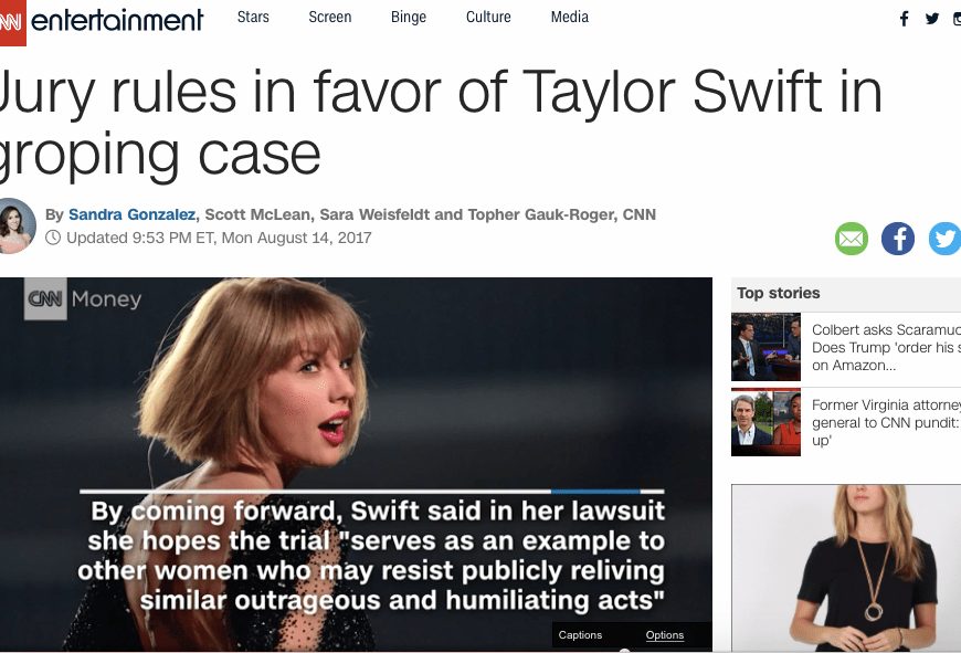 テイラー・スイフトがセクハラ訴訟で勝ったのに、1ドルしかもらわない理由があります。 Continue reading [Radio]セクハラ訴訟で勝利したテイラー・スイフトが$1しかもらわない理由は? Taylor Swift Wins $1 Groping Case