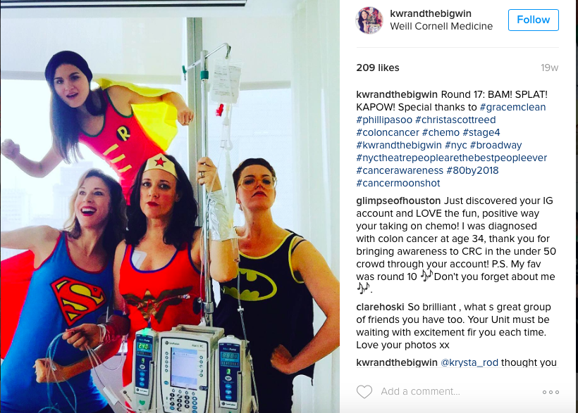 コスプレしながら抗がん剤治療を受けるKaren Walshさん、がん経験があるブロードウェーの仲間たちも集まりカレンさんを中心にその輪が広がっています。